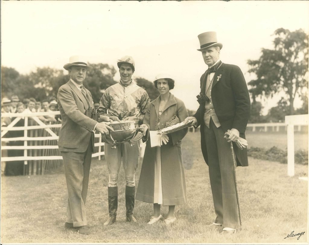 Mrs. Scott with the help of her brother, William duPont, Jr., transformed Montpelier into a first class Thoroughbred breeding and racing facility, building a state of the art steeplechase course and a flat training track. In 1929, Marion inaugurated the Montpelier Races and opened them to the public. As an owner, Mrs. Scott bred a series of winners from excellent Thoroughbred bloodlines. In 1932, her horse Trouble Maker won the Maryland Hunt Cup, regarded as America’s most challenging timber race, and in 1938, her horse Battleship, a son of Man o’ War, became the first American bred and owned horse to win the British Grand National Steeplechase. Other winners campaigned under her French blue, old rose and silver colors were Mongo, Accra and Annapolis, another son of Man o’ War.